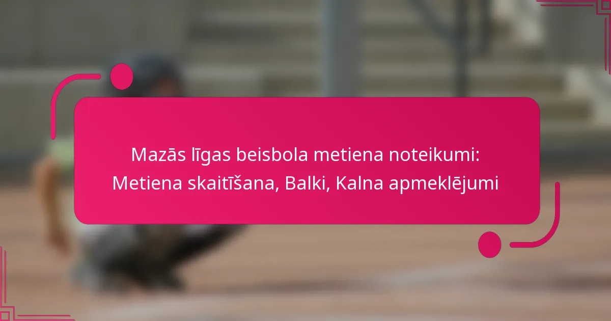 Little League Baseball ievieš specifiskus metienu noteikumus, lai nodrošinātu jauniešu sportistu drošību un godīgu spēli. Tie ietver metienu skaita ierobežojumus, kas pielāgoti vecuma grupām, noteikumus par balkiem, lai novērstu maldinošas prakses, un ierobežojumus uz kalna apmeklējumiem, lai saglabātu spēles plūsmu un stratēģiju. Šo noteikumu izpratne ir būtiska treneriem, spēlētājiem un vecākiem, lai veicinātu pozitīvu un konkurētspējīgu vidi.