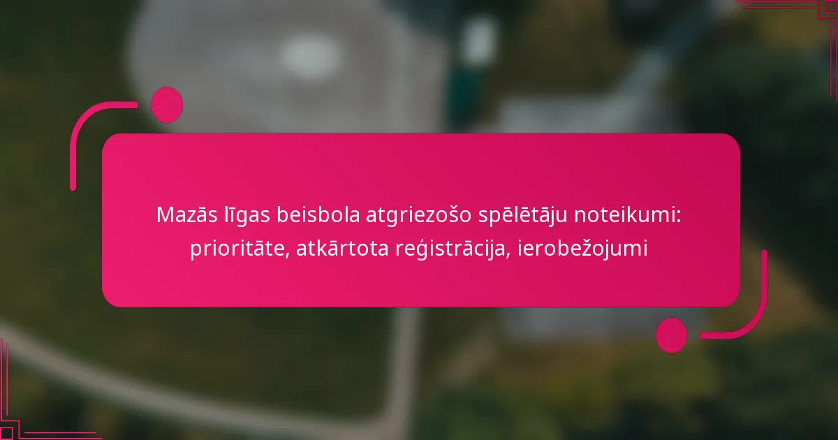 Little League Baseball atgriešanās spēlētāju noteikumi nosaka atbilstību un prioritāti spēlētājiem, kuri piedalījušies iepriekšējās sezonās. Šie noteikumi ir būtiski, lai nodrošinātu, ka atgriešanās spēlētājiem ir godīgas iespējas atgriezties savās komandās, vienlaikus līdzsvarojot jauno spēlētāju vajadzības.