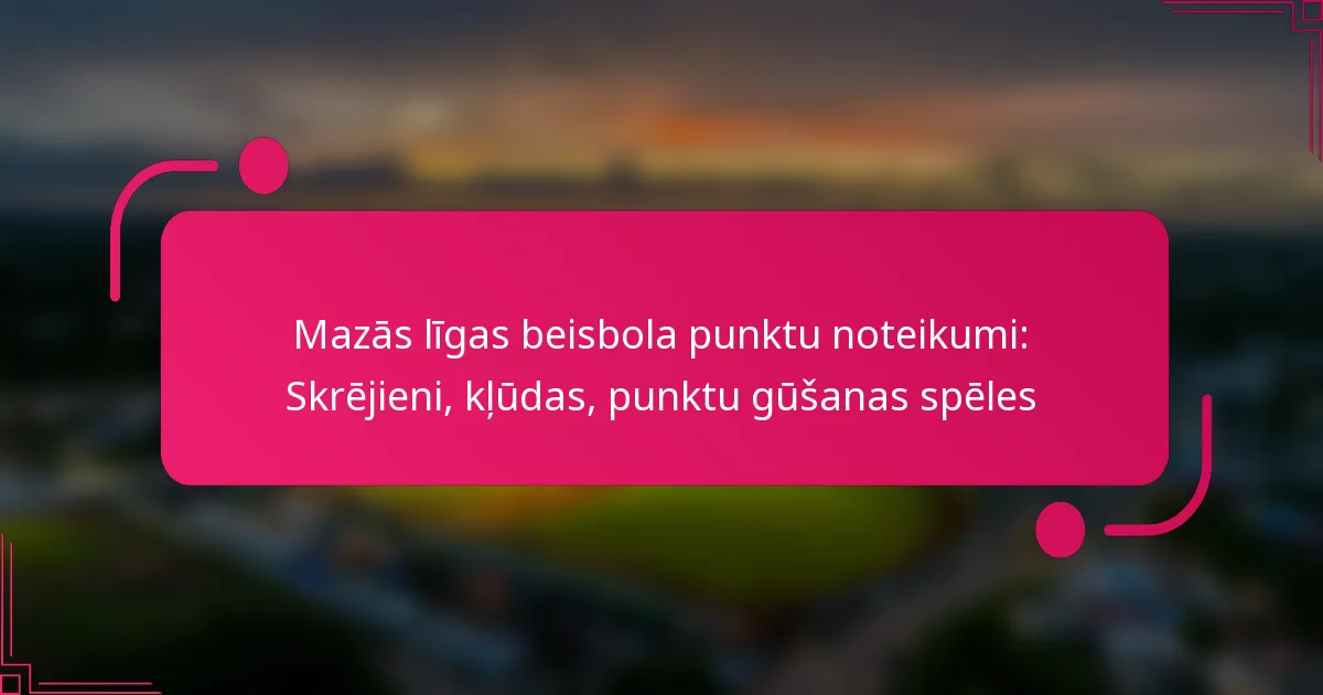 Little League punktu noteikumi būtiski atšķiras no tiem, kas ir vidusskolā un profesionālajā beisbolā, galvenokārt attiecībā uz to, kā punkti un kļūdas tiek fiksētas. Šo atšķirību izpratne var palīdzēt spēlētājiem, treneriem un vecākiem efektīvāk orientēties spēlē.