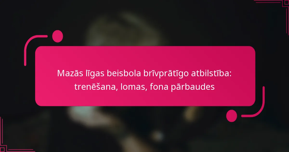 Fona pārbaudes process brīvprātīgajiem Little League beisbolā ir izstrādāts, lai nodrošinātu visu dalībnieku drošību. Tas parasti ietver vairākus pārbaudes veidus, lai pārbaudītu treneru un citu brīvprātīgo piemērotību, palīdzot uzturēt drošu vidi bērniem.
